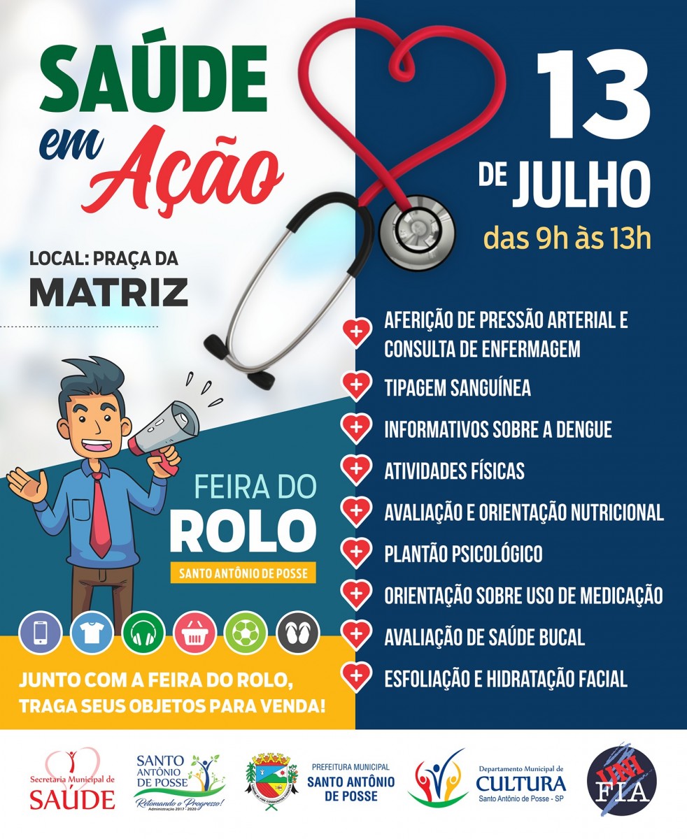 O evento “Saúde em Ação” que acontece no sábado, dia 13 de julho, contará também com um Posto de Vacinação. Os profissionais da Vigilância Epidemiológica do município realizarão a aplicação das doses das seguintes vacinas: FEBRE AMARELA E SARAMPO.