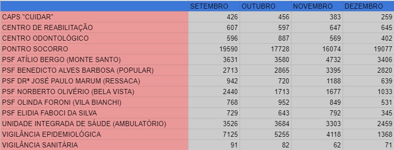 Confira a quantidade de atendimentos do 3º Quadrimestre de 2020.