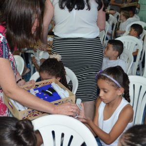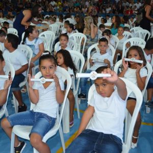Nesta semana, os alunos das EMEFs comemoram com seus amigos e familiares o término da primeira etapa de vida educacional. Ao todo, seis Creches e uma EMEI realizaram a entrega do certificado aos seus estudantes. As cerimônias aconteceram na quadra poliesportiva da EMEF Profª. Elisabete Lala Villalva (CIEF) e no prédio da EMEI Primeira Estação, respectivamente.