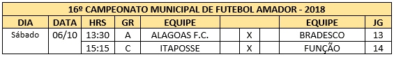 A segunda semana do 16º Campeonato Municipal de Futebol Amador terminou com muitos gols marcados: ao todo, a rede balançou 25 vezes no sábado e domingo. No sábado, dia 29 de setembro, a equipe do Figueirense marcou quatro gols em partida contra o 100 Limites, que não marcou no jogo. O placar se repetiu no segundo jogo do dia, mas, desta vez, foi o time Paulista que fez quatro gols contra o Função, que não goleou nenhuma vez.