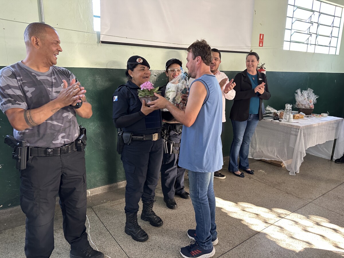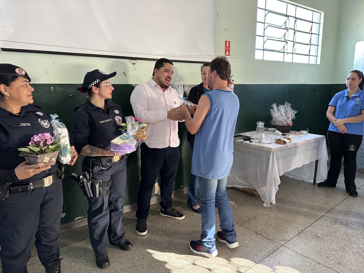 A Prefeitura Municipal de Santo Antônio de Posse agradece pelo apoio os secretários Luiz Carlos Pinto e Rogério Bassani das cidades de Mogi Mirim e Estiva Gerbi respectivamente, que cederam a GCM Elaine (Mogi Mirim) e GCM Alzeni (Estiva Gerbi) nesta tarde para ministrarem a palestra para os alunos da APAE.