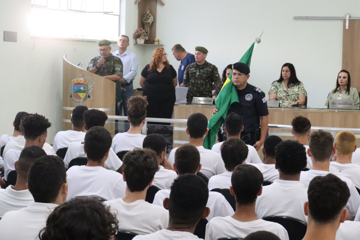 A Junta de Serviço Militar de Santo Antônio de Posse realizou na manhã desta terça-feira, 12 de setembro, no plenário da Câmara Municipal, a solenidade de “Compromisso à Bandeira” e entrega dos Certificados de Dispensa de Incorporação aos possenses que foram dispensados da prestação do Serviço Militar inicial no ano corrente. Cerca de oitenta jovens participaram da atividade prevista no Regulamento da Lei do Serviço Militar em seus artigos 107 e 217, sendo importante momento de transição para a vida adulta, de fortalecimento do espírito cívico e da cidadania.