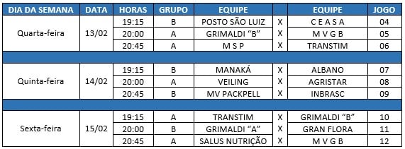 Foi aberta a temporada de jogos da 12ª edição do Campeonato Interfirmas de Santo Antônio de Posse. As primeiras disputas aconteceram na noite desta terça-feira, dia 12 de fevereiro, no Ginásio Municipal.