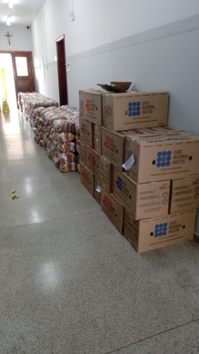 Junto ao Kit foi entregue um pacote com filé de coxa e sobrecoxa de frango, e ovos de chocolate devido a comemoração da Páscoa, respeitando inclusive os alunos que têm intolerância à lactose ou restrições ao açúcar.