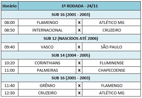 Serão doze equipes, divididas entre as categorias Sub-12 (nascidos até 2006), Sub-14 (2004-2005) e Sub-16 (2001-2003). Todos os jogos já têm data marcada: 24 de novembro, 1 e 8 de dezembro e serão realizados no Ginásio de Esportes.