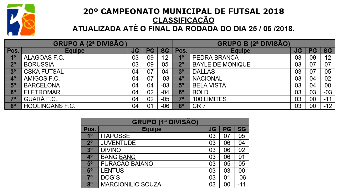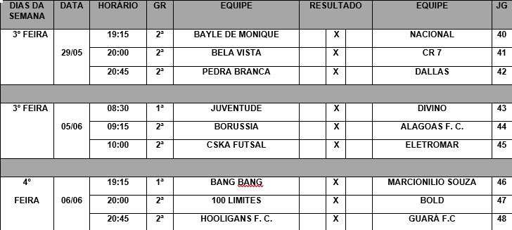 Acompanhe abaixo a tabela dos jogos até a próxima edição do Jornal Oficial.